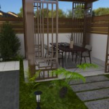 一方新中式庭院,藏着生活的诗意与自在。一进门,便看到一幅雅致的山水小品,迎人归家,尽显东方韵味。闲时坐于亭中,看云卷云舒,听风语鸟鸣。蔬菜种植区,生机盎然,亲手种下的菜苗茁壮成长,采摘间满是田园乐趣。在这里,传统与自然共生,古韵与烟火并存,
