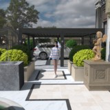 本方案以精致优雅为基调,打造兼具社交与休闲功能的高品质户外空间。庭院以中央喷泉为核心,搭配经典雕塑,成为视觉焦点;覆植长廊绿荫环绕,营造静谧浪漫的漫步体验。休闲凉亭则为品茶、小酌提供了雅致场所。步道串联各区,四周绿植点缀。院内停车位融入整体设计,兼顾实用与美观。通过对称布局、考究材质与层次丰富的植被,这座庭院完美诠释了轻奢典雅的欧式风情,为户主带来充满格调的理想生活。