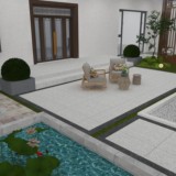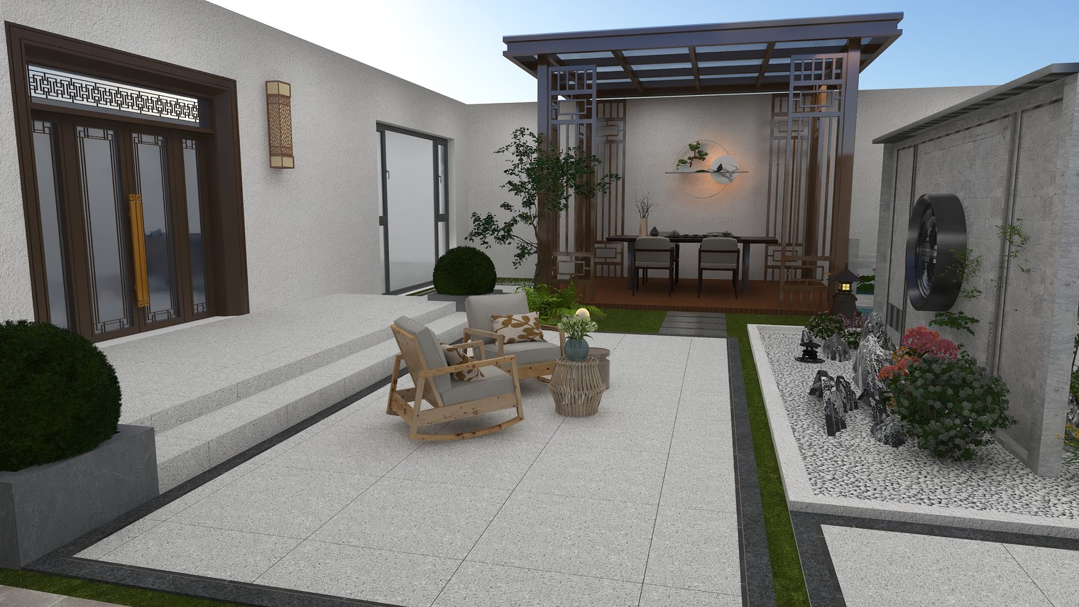 本庭院以借景、对景、障景等传统造园手法,将其运用到新中式庭院设计中,营造出具有中式韵味的空间氛围。强调庭院与自然环境的和谐共生,通过引入水景、假山、植物等自然元素,营造出宛如自然山水的庭院景观,让人们在庭院中能够感受到大自然的美好。
